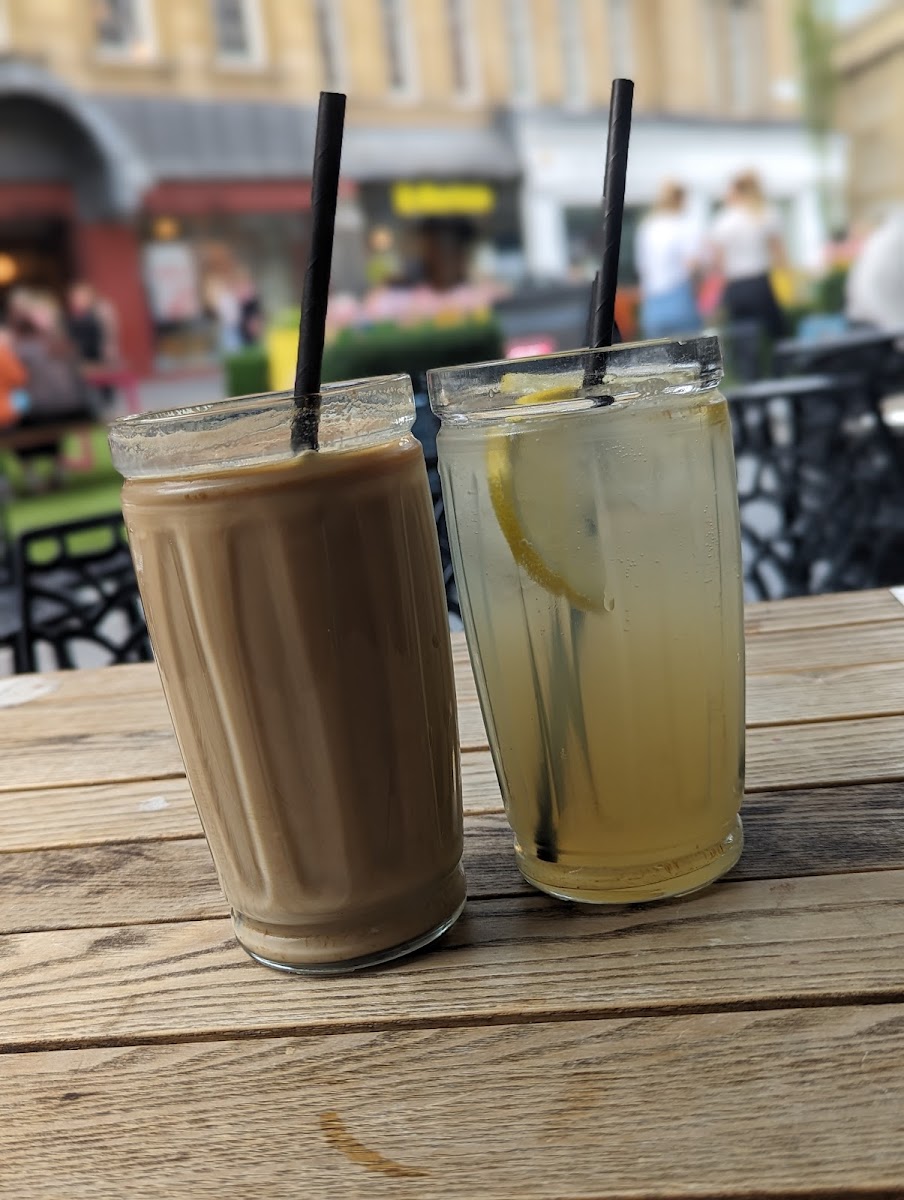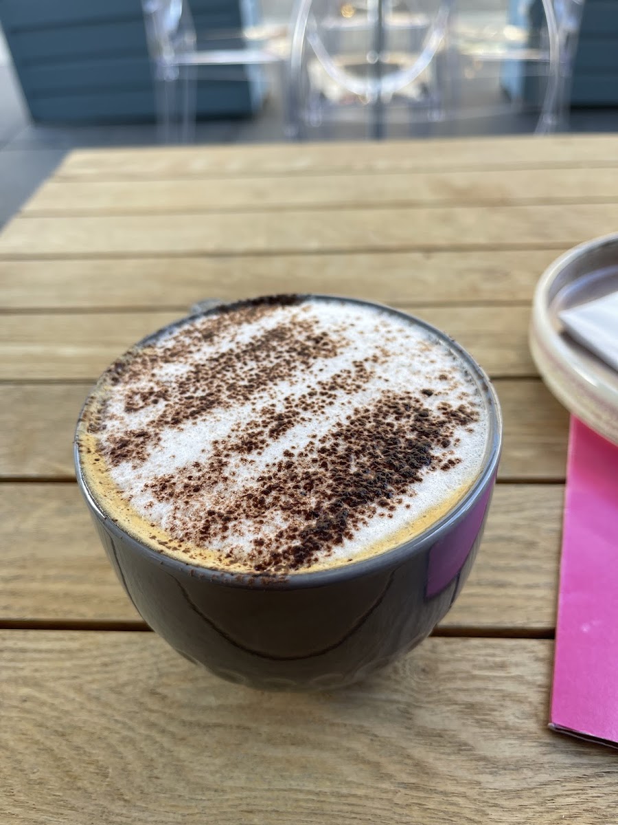 The café is popular for its extensive coffee menu, including favorites like Cappuccino, Black Coffee, and the decadent Caramel Mocha. For something a little different, try the Beetroot Latte or Butterfly Latte. If you prefer iced drinks, the Iced Coffee and Iced Tea are perfect options to cool off while indulging in a relaxing break. Pair your drink with a delicious snack, such as a Triple Decker Cheese and Onion Sandwich, Toastie, or a Sharing Platter. If you're in the mood for something sweet, the Coconut Cake, Muffins, and Chocolate Brownie will surely hit the spot. For those who enjoy a cocktail, the café serves up creative drinks like the Kinder Espresso Martini.